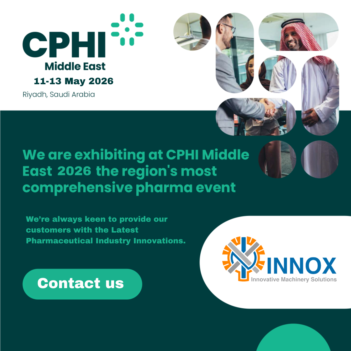 INNOX will participate in CPHI Middle East 2026 in Malham, Riyadh, Saudi Arabia, as we’re opening the door for our customers across the GCC region with our valued partners to come together to explore the latest innovative solutions in the pharmaceutical industry.